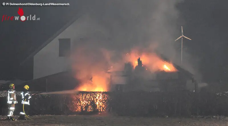 D: Brand eines Satteldach-Carports mit integriertem Abstellraum in Lemwerder