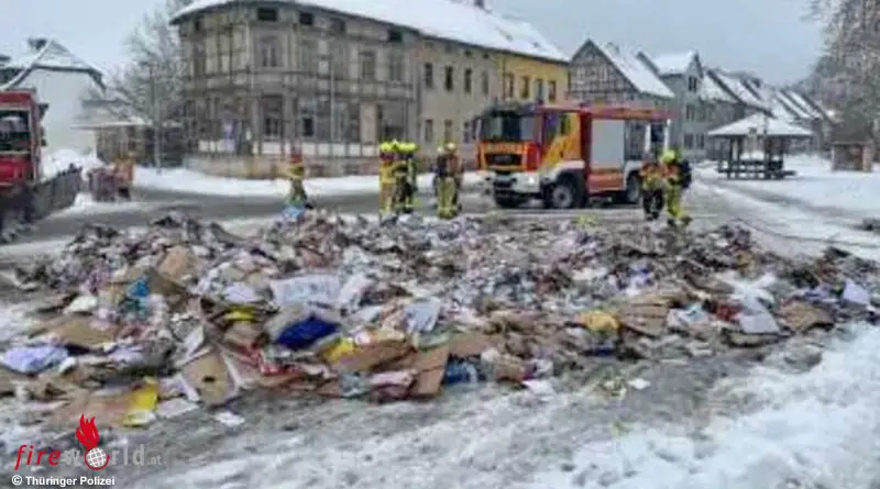 D: Brennende Ladung von Entsorgungs-Lastwagen gekippt