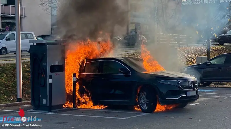 Sbg: E-Auto an 150 kW Ladesäule in Oberndorf bei Salzburg in Flammen → Hochvolt-Container im Einsatz