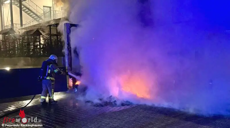 D: Drei Großmülltonnen brennen in Wandnähe in Recklinghausen