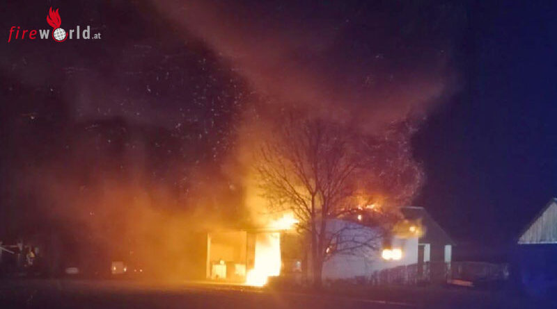 Bgld: Großeinsatz von 15 Feuerwehren bei Wirtschaftsgebäude mit Explosionen in Schandorf