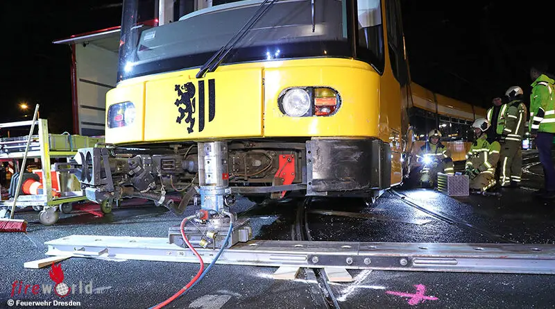 mehr lesen ...DRESDEN (DEUTSCHLAND): Die Spezialisten für Straßenbahnhilfeleistung der Berufsfeuerwehr Dresden wurden kurz nach 22 Uhr des