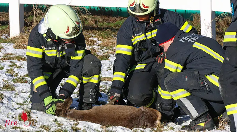 Oö: Im Zaun eingeklemmt → Reh in Thalheim bei Wels durch Feuerwehr und Jäger gerettet