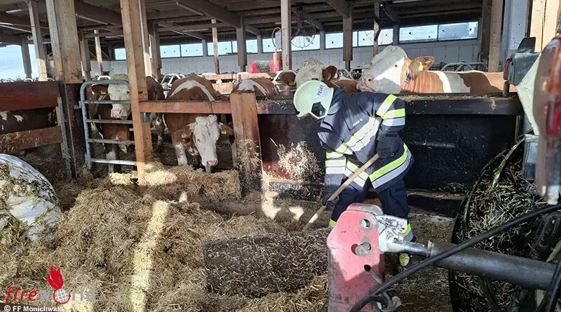 Stmk: Brennendes Stroh im Bereich des Stalls auf Bauernhof in Mönichwald