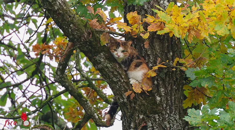 WELS (OÖ): Eine Katze, die bereits längere Zeit in luftiger Höhe in einem Waldstück am