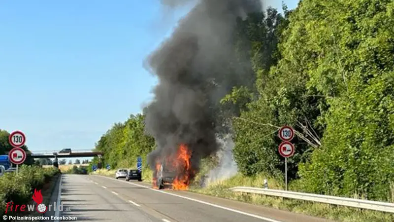 D: Wohnmobil auf A 65 bei Landau in Flammen aufgegangen
